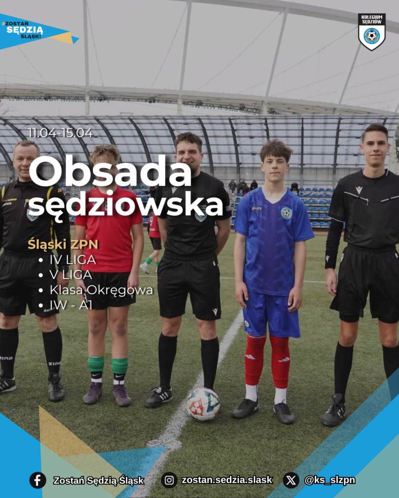 Poniżej publikujemy obsadę sędziowską rozgrywek na szczeblu Śląski Związek Piłki Nożnej