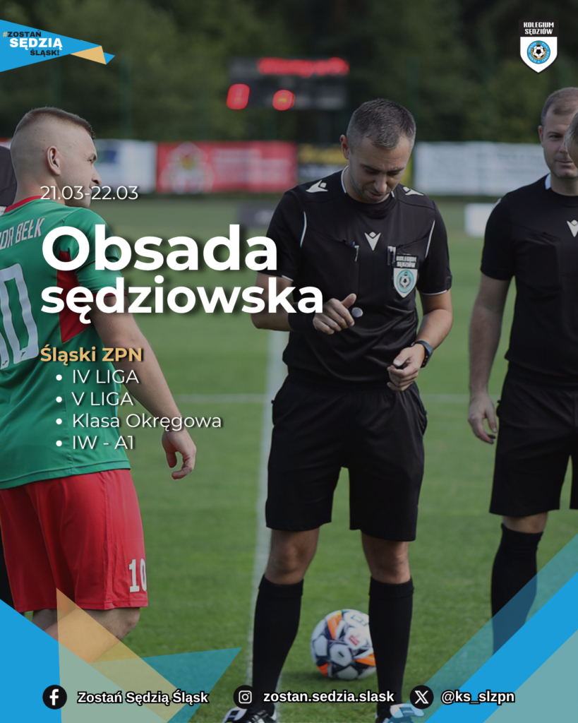 Poniżej publikujemy obsadę sędziowską rozgrywek na szczeblu Śląskiego Związku Piłki Nożnej